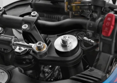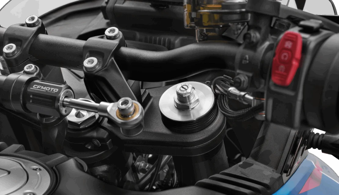 Pro vyšší bezpečnost při ovládání motocyklu je součástí standardní výbavy tlumič řízení nastavitelný běhen jízdy ve 20ti stupních.