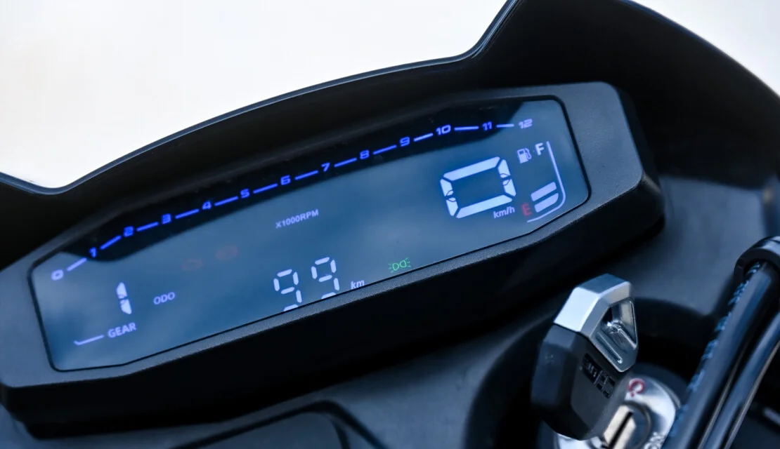 TFT přístrojový panel zobrazuje všechny důležité hodnoty. Oceníš především ukazatel zařazené rychlosti a palivoměr.