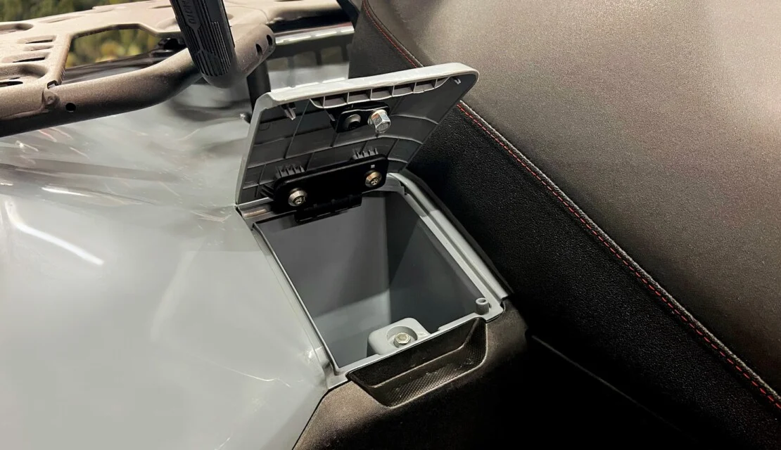 Praktické řešení pro uložení věcí ve dvou zadních schránkách poskytují prostor pro nářadí, rukavice nebo jiné osobní věci. Magnety umožňují pohodlné a rychlé otevření a zároveň zůstávají schránky bezpečně a stabilně zavřené během jízdy.